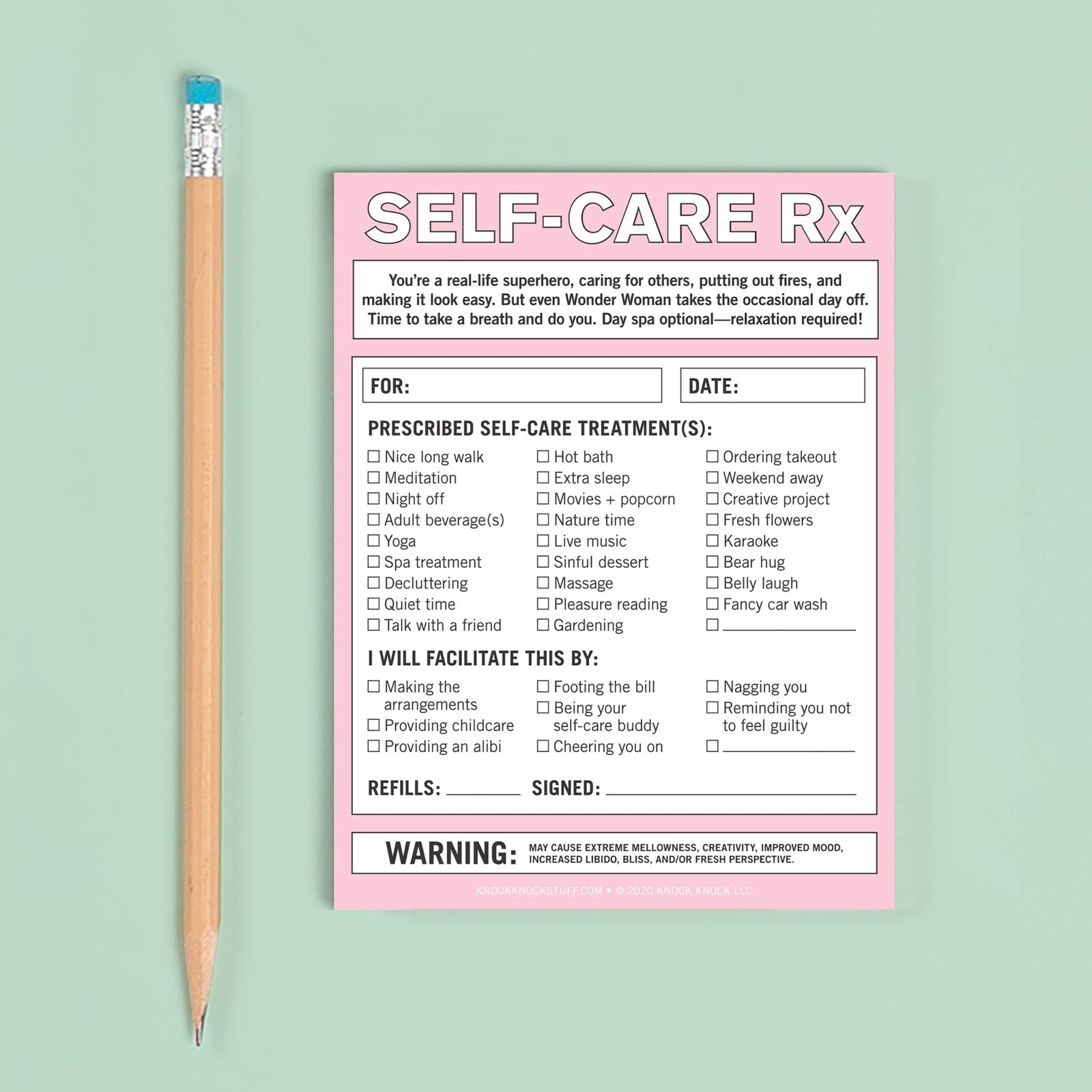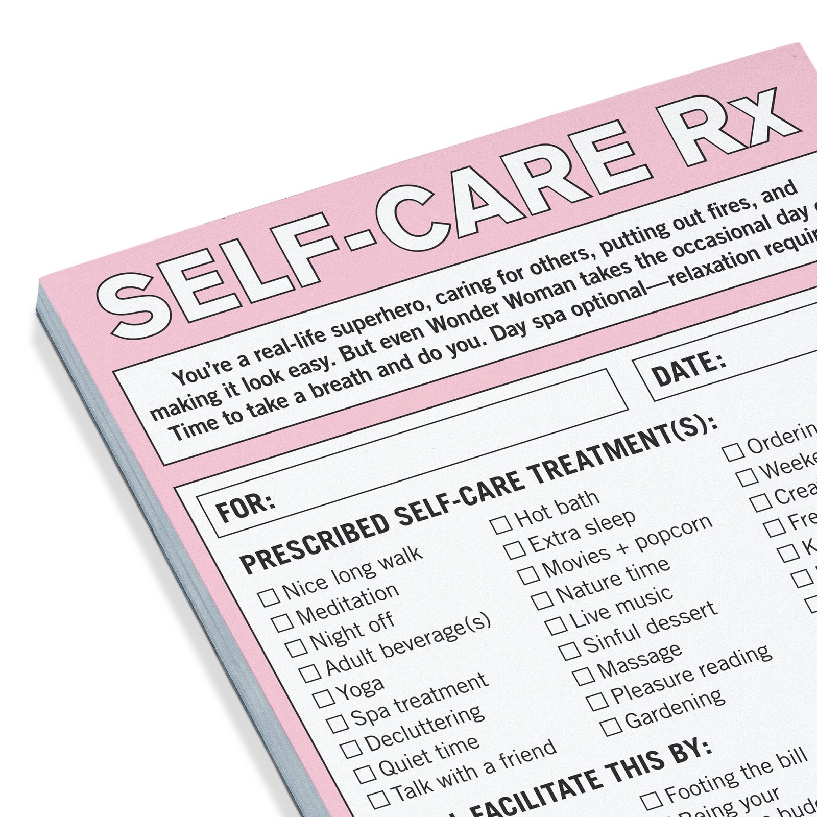 It’s time to stop, drop, and TLC yourself, people! We know self-care is vital, but sometimes it’s hard to prioritize ourselves without feeling a bit selfish. This pad offers permission—nay, a prescription!—to actually carve out time to nurture ourselves. Think of it as a gentle but official-ish push for friends, loved ones, and yourself. Now let’s get this self-caring party started, okay?