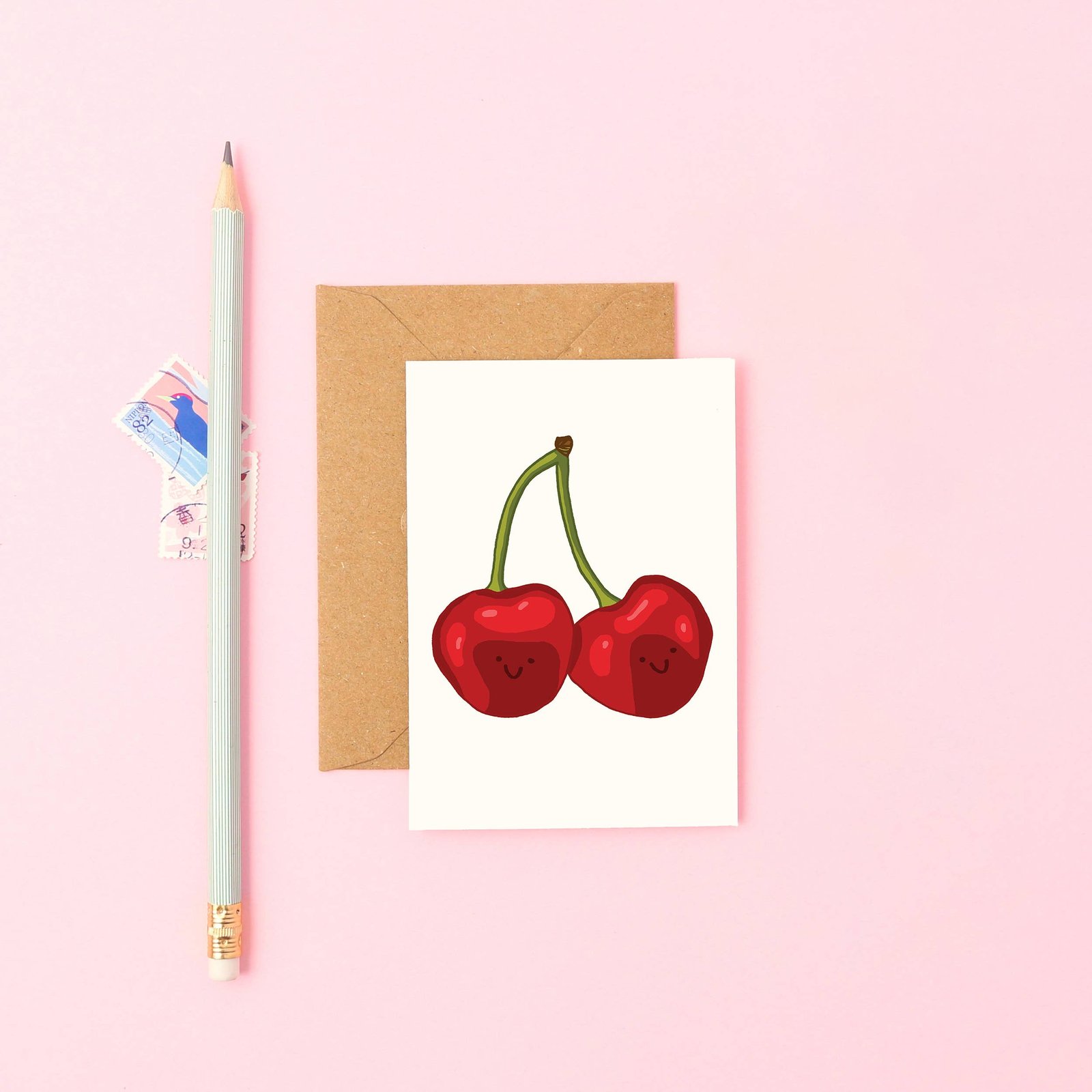 A little card bursting with sweetness! This Mini Cherries Card features a playful hand-drawn illustration of two smiling cherries – perfect for friendship, love, thank-yous, or just because. Its mini size makes it ideal as a gift topper, note card, or party favour.
