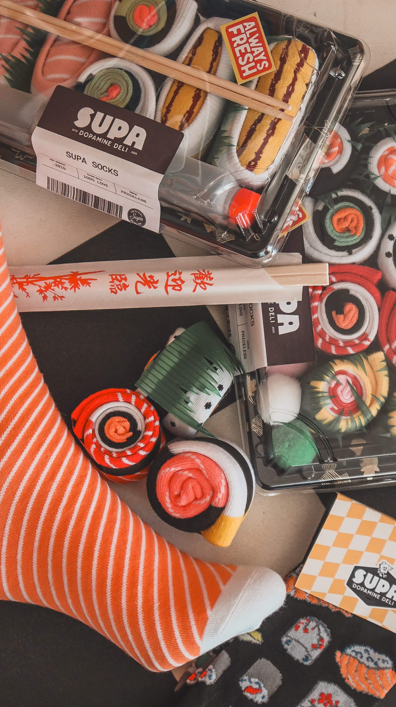 Bring a little joy to your sock drawer with our Sushi Socks – the perfect mix of cosy comfort and playful fun. Each pair looks like a mini sushi roll when wrapped, and like your new favourite socks when you pop them on.