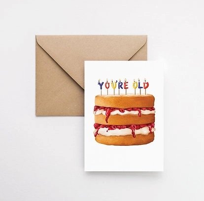 This one’s Katie’s number-one bestseller for a reason. The front features a detailed, ridiculously decadent cake, because what’s a birthday without cake? It’s playful, charming, and guaranteed to raise a smile before they’ve even opened it.